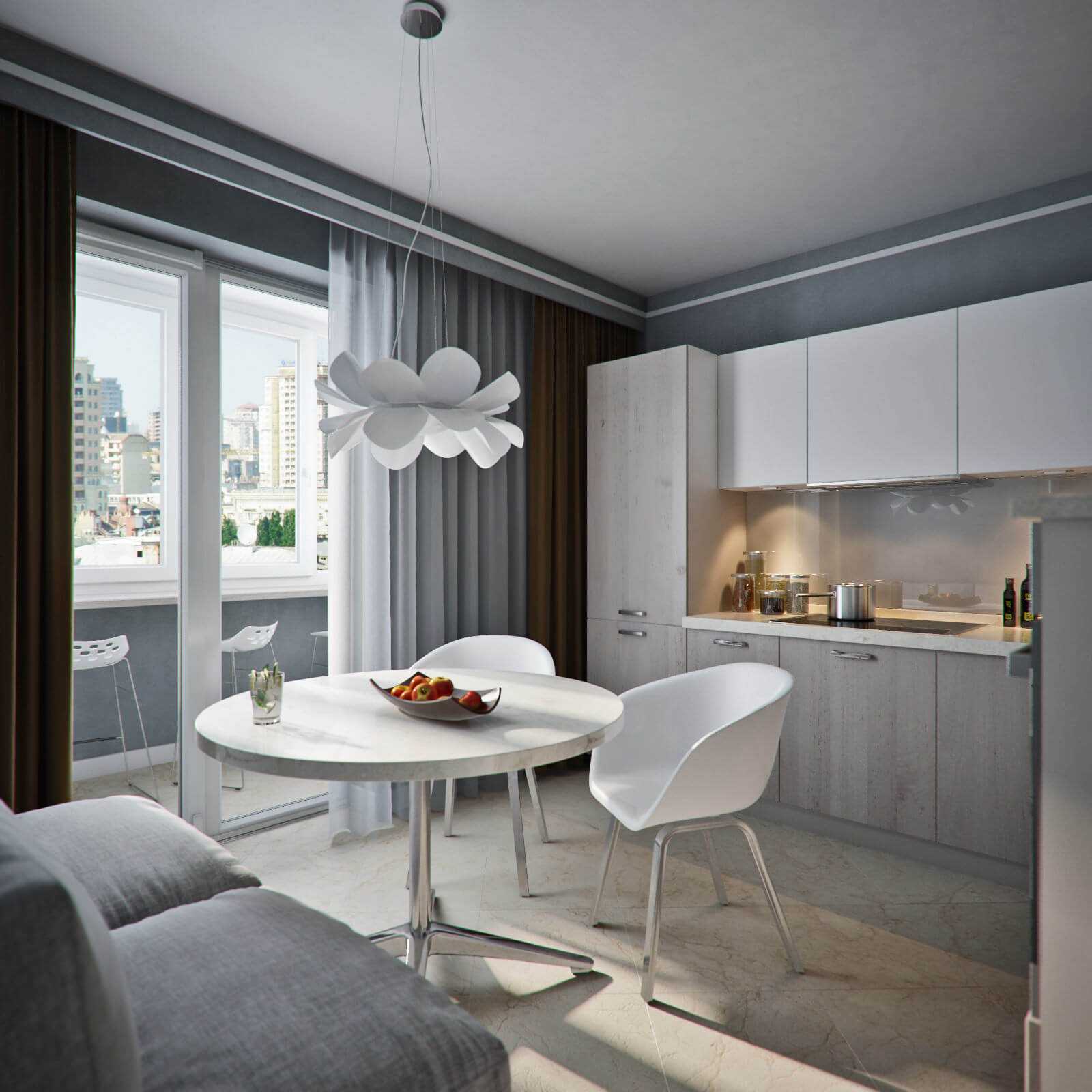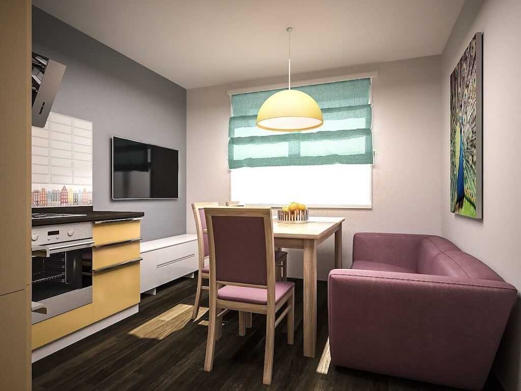будет ли кухня выполнять функции других помещений. Если в квартире нет гостевой спальни, подумайте о компактном диване-трансформере и обеденном столе, который легко убрать, сложить или задвинуть, когда приедут гости с ночевкой.