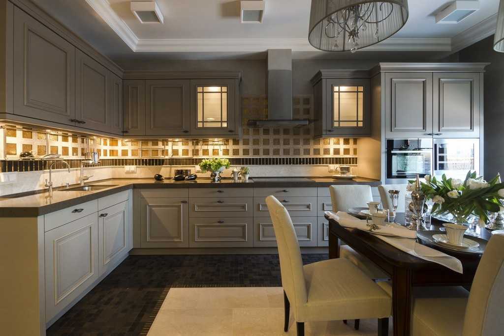 Сочетание современной мебели и элементов классического стиля позволяет получить новое, подходящее для дизайна маленькой кухни направление – неоклассику.