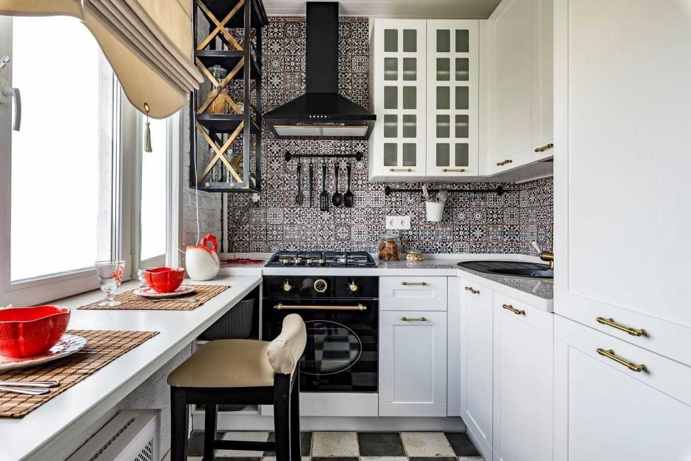 Этот элемент поможет убрать сложности с решением вопроса относительно неудобного расположения окна на кухне. Рабочий стол смените широким подоконником, но не забудьте объединить все детали кухонного интерьера единой мыслью. А именно — одинаковыми декоративными элементами (единый стиль, единая цветовая гамма). Используя такой вариант, вы легко можете себе позволить релаксацию, глядя на окружающий пейзаж за окном.