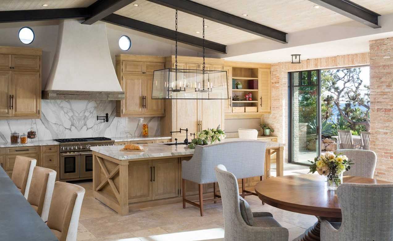 Никаких излишних деталей, всё несёт в себе уют и практичность. Если на вашей кухне есть большие окна и высокие потолки, то греческий стиль будет прекрасным решением, потому что рабочая зона будет заполнена большим количеством натурального освещения, которое будет также отлично смотреться с простыми цветами, превалирующими здесь.