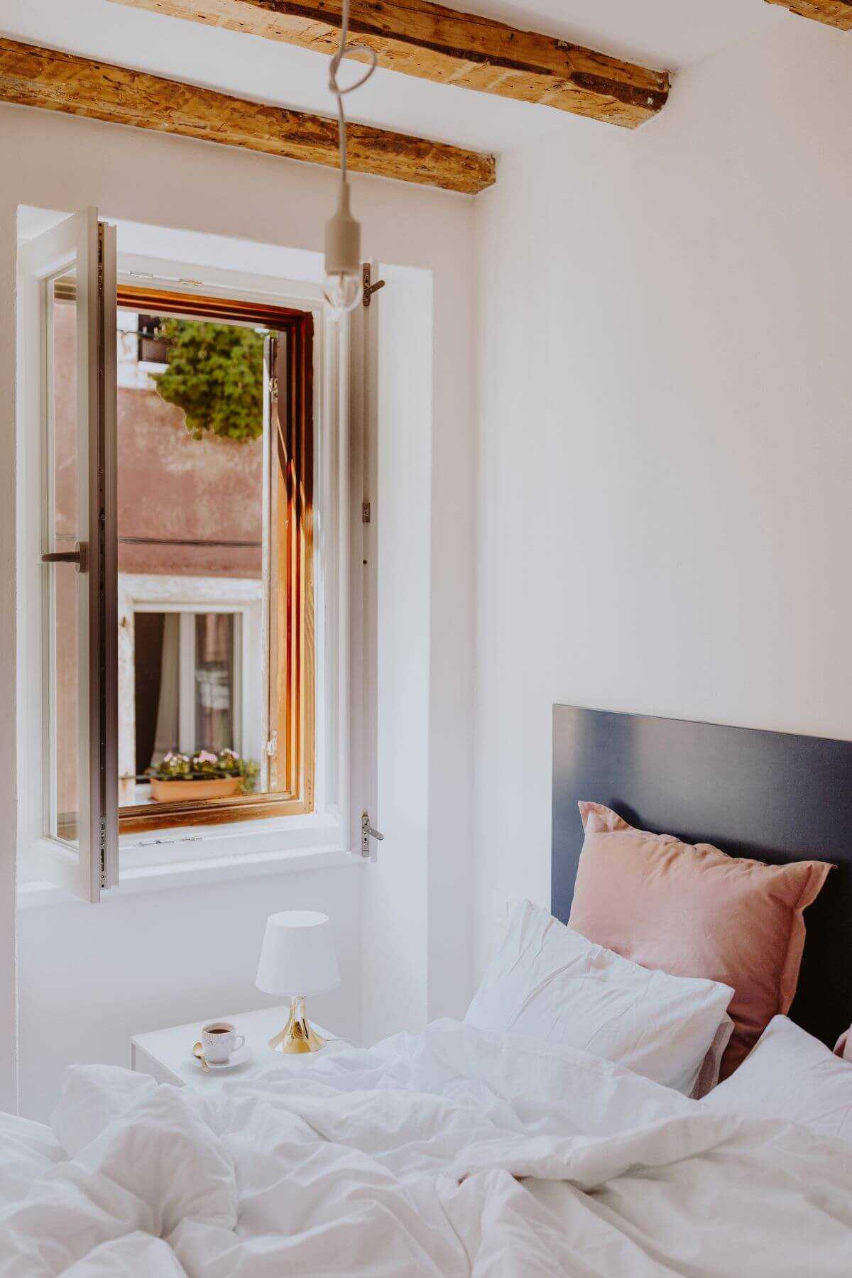 Шторы для оконных проемов рекомендуется подобрать компактные, изготовленные из натуральных материалов.