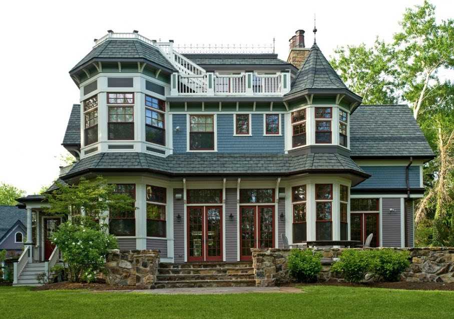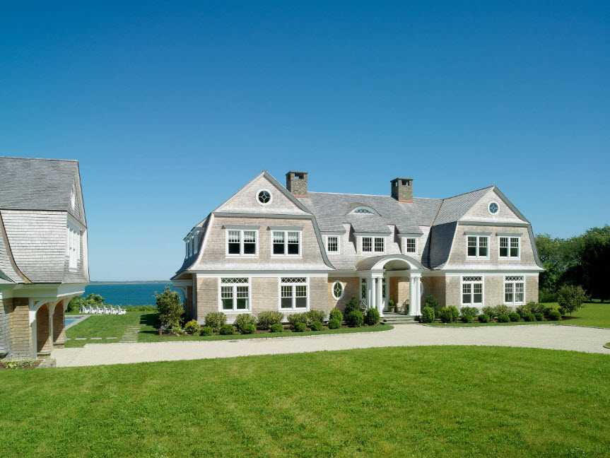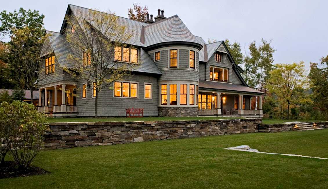 Соответственно, при строительстве используется бетон и натуральный камень, а так как жилье имеет большую площадь, то особое внимание уделяется выбору теплоизоляционных материалов и качественной гидроизоляции. Что касается простых и легких материалов, то им здесь места нет, исключением служат пластиковые окна, но и к ним выдвигаются особые требования, ведь они не должны быть стандартными (предпочтительно использовать деревянные окна или пластиковые с имитацией древесины)