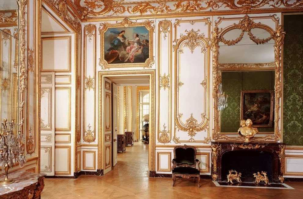 - Наличие хотя бы одного большого зеркала, отражающего этот свет.Резная рама для него. Позолота.