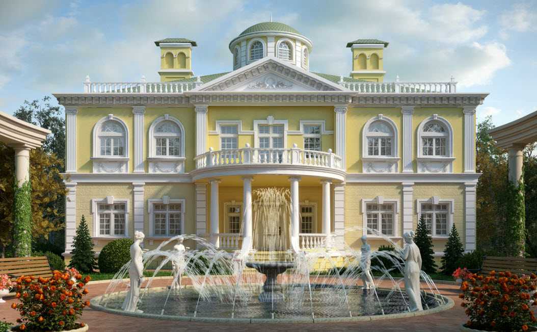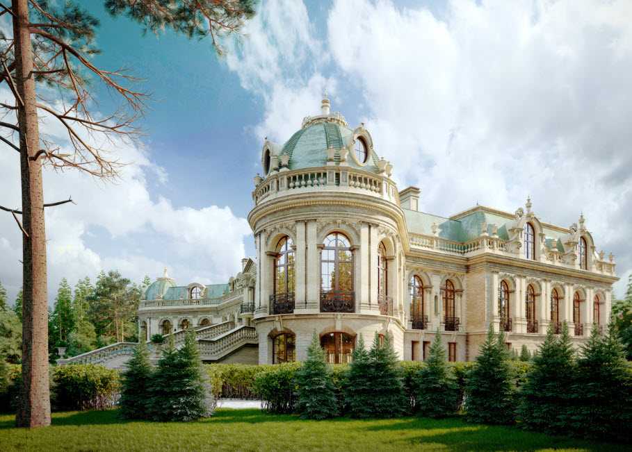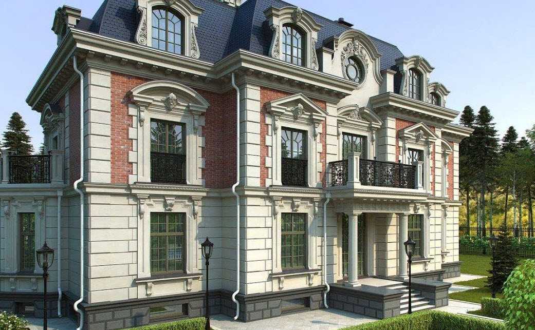 При выборе стройматериалов нужно понимать, что дом в стиле барокко должен выглядеть добротно и монолитно, внушая доверие к его сроку службы и степени прочности