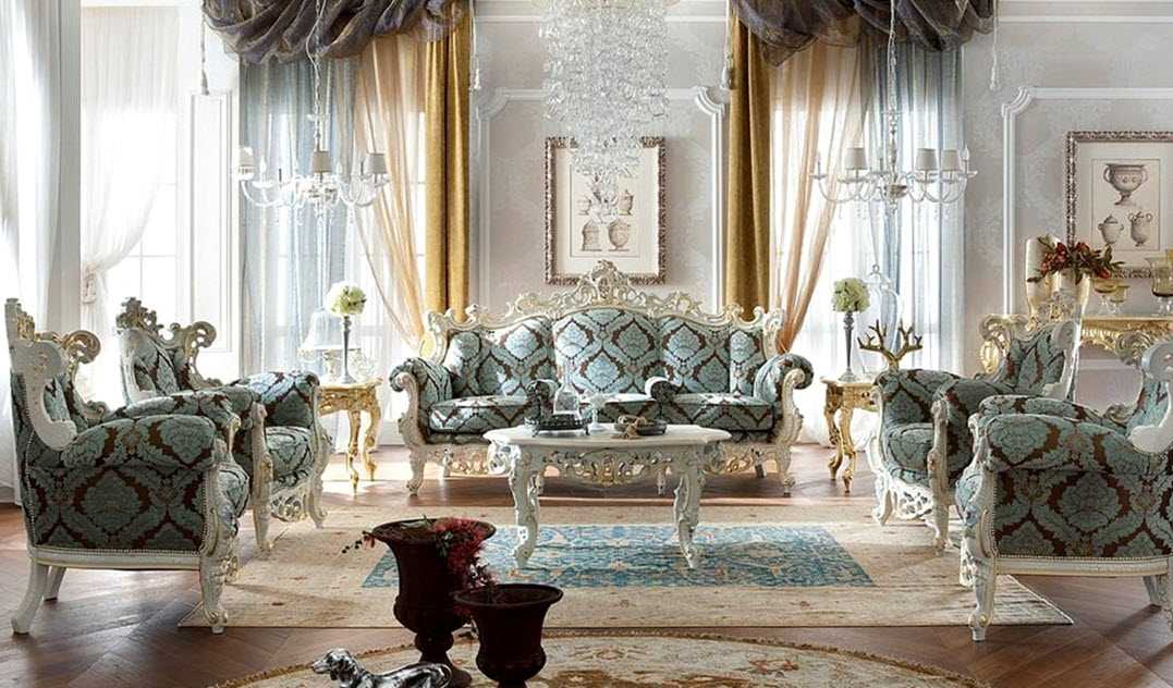 Мебель в барокко подчеркивает помпезность интерьера: кресла с отогнутыми спинками и удлиненными сидениями, объемные диваны, пуфы и табуреты для ног с изогнутыми ножками, пластичными поверхностями. Изготавливается из дорогих пластичных пород – южный орех, цейлонское черное дерево. Инкрустируется золотом, серебром, костью, мрамором с изображением женских фигур, голов львов и баранов. Обивка яркая из натурального текстиля: бархат, жаккард, гобелен, штоф.