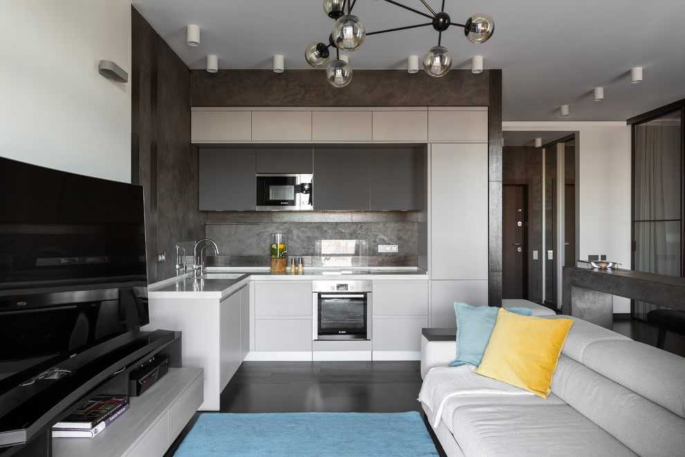 Эти два пункта крайне важны из-за частой встроенности мебели и техники, а также скрытой системы хранения. Иными словами, требуется продуманно расположить и сам кухонный гарнитур, в особенности шкафы, чтобы на все нашлось место.