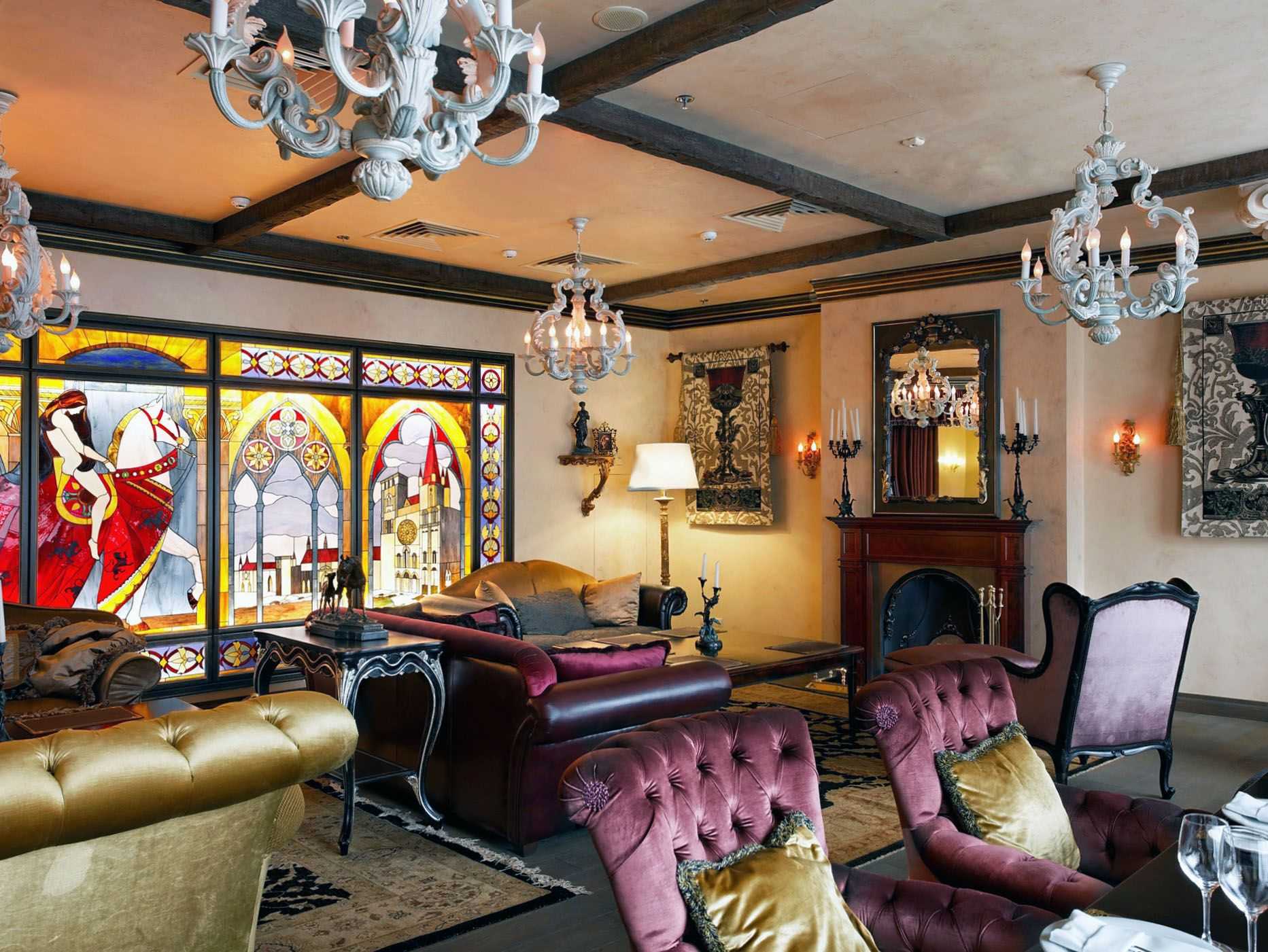 - Свет. В освещении интерьера в стиле китч сложно выделить какой-либо принцип. Источников света должно быть несколько. Конечно же, это естественное освещение, которого должно быть достаточно, однако и здесь возможны различные варианты. Именно в этом стиле приемлемы узкие готические окна, на которых установлены жалюзи. Отлично подойдут люстры и бра в различных стилях. Для бюджетного варианта подойдет простая лампочка.