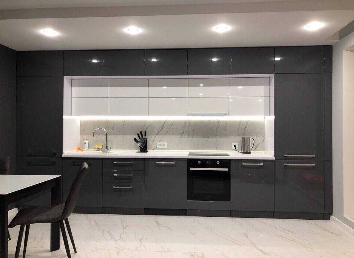 Установка прямой кухни — это простое и практичное решение. Все шкафы и бытовая техника находятся в одном ряду. Если стена достаточно длинная, не будет проблем с размещением всего оборудования, а будет много шкафов. Если ваша стена не слишком длинная, то стоит подумать о высоких верхних шкафах, чтобы вернуть себе немного потерянного пространства.