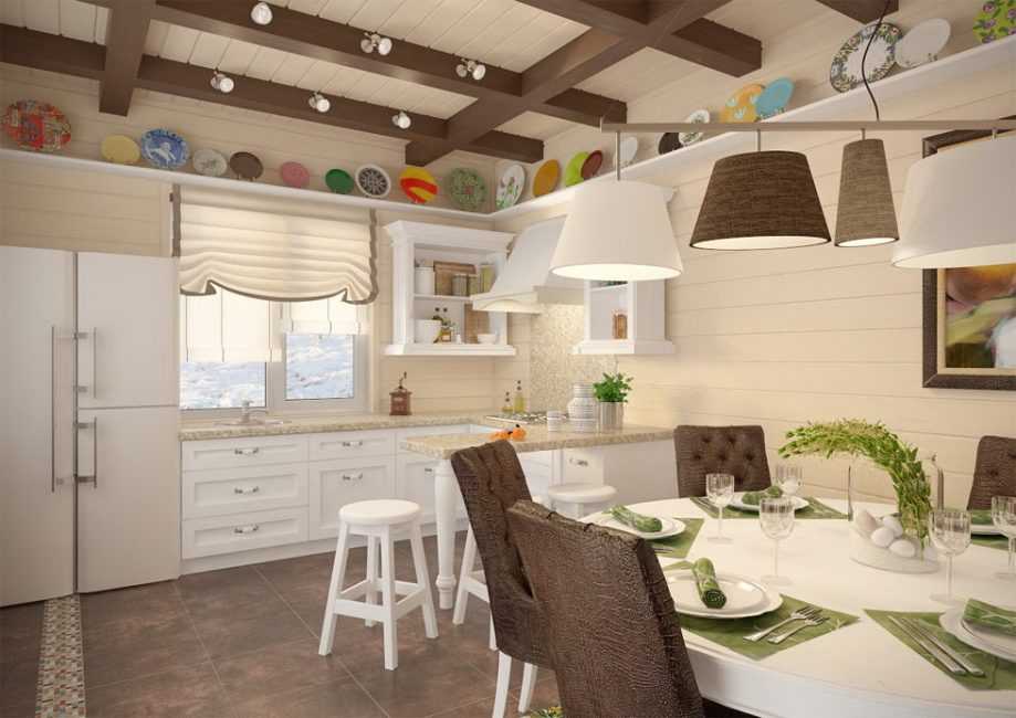 В каждой зоне стоит сделать освещение не только на потолке, но и установить дополнительные световые приборы. Такие рабочая и обеденная зона обязательно хорошо освещаются.