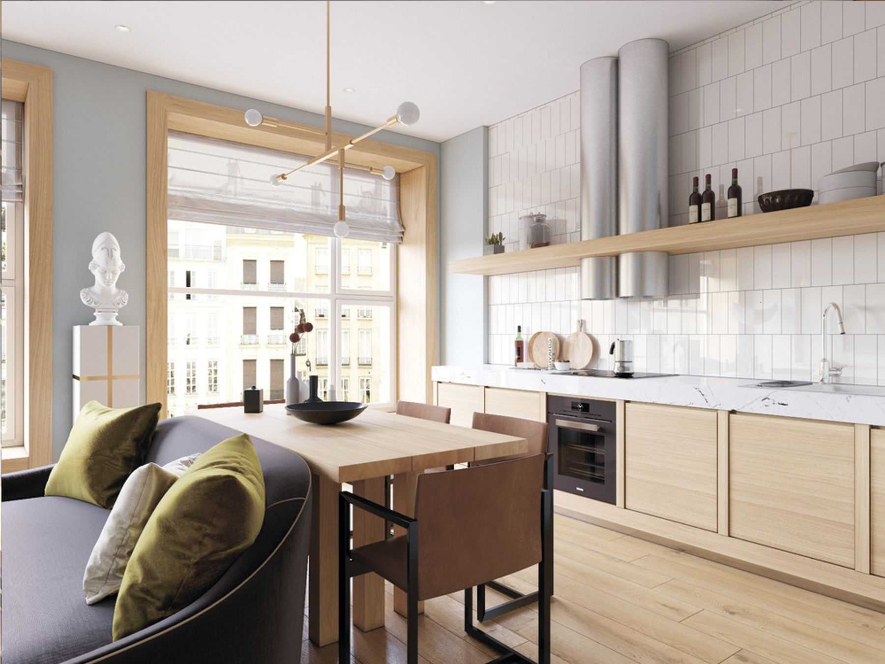 Будут популярны серые, бежевые, коричневые и голубые оттенки с черными и белыми акцентами. Светлая гамма подходит для основных стилей типа скандинавского, классического и неоклассического, а темная — к ар-деко, лофту и минимализму. Нужно помнить о том, что светлые стены визуально расширят площадь, а темные, наоборот, сузят. Чистый белый цвет для кухни будет крайне непрактичным выбором. Он быстро потеряет свежесть и потребует постоянного влажного ухода. Поэтому лучше выбрать светлые цветные тона.