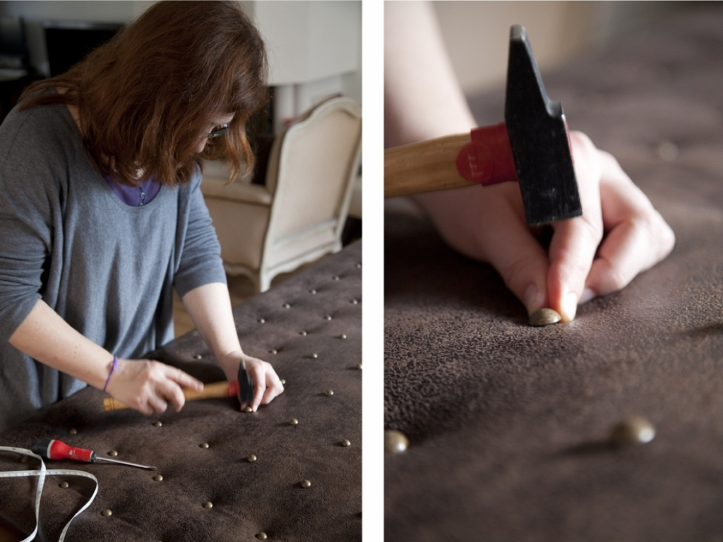 От старой обивки лучше всего избавиться. Она может быть закреплена клеем. В таком случае вам понадобится строительный нож либо (если прикреплены скобки степлера) придется воспользоваться плоской отверткой. Убрав старую обтяжку, принимайтесь устанавливать новую.