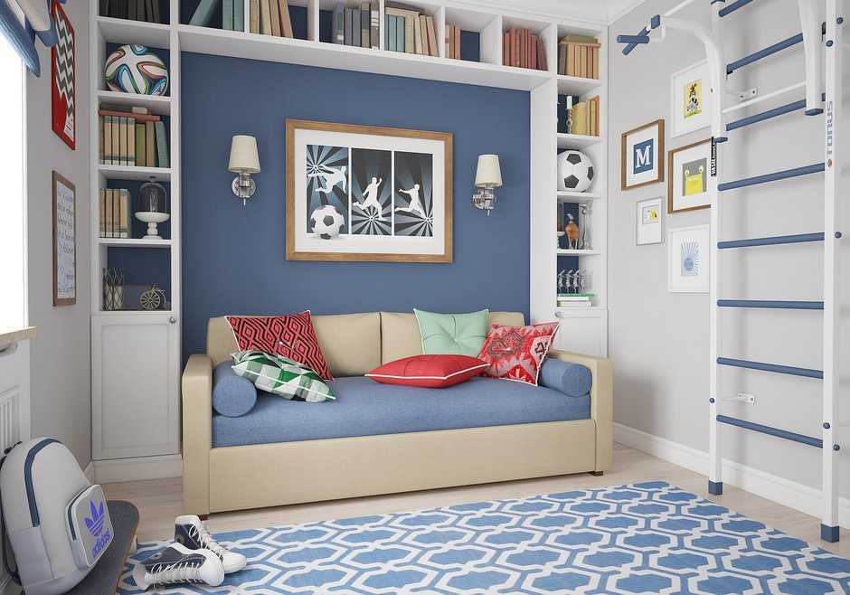 Форма и размер мебели для детской комнаты зависит от потребностей ребенка. Детский ортопедический диван позволяет экономить пространство, поэтому такая мебель будет смотреться уместно в небольшой комнате.