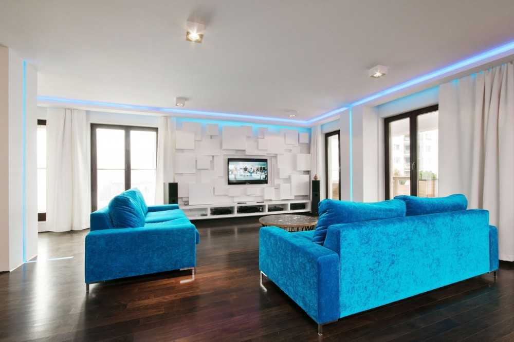 Тогда, вы делаете акцент на нём, и ещё немножечко красного в виде вкраплений добавляете в остальные детали: небольшое включение красного в люстру, картины, декор.