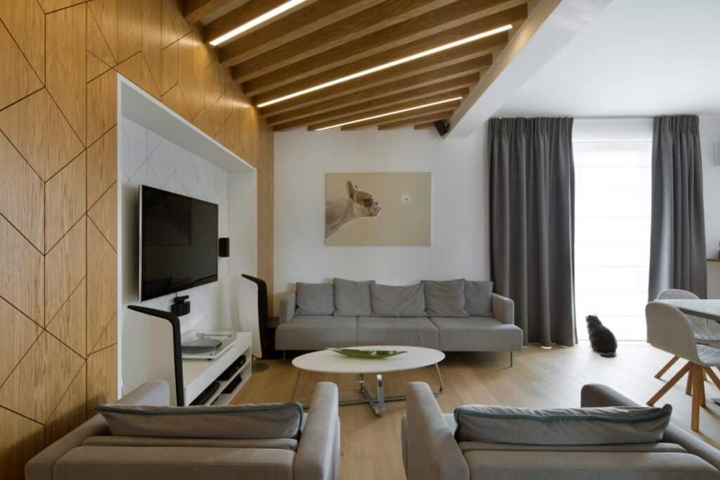 Деревянный пол — это еще и синоним уюта — он может утеплить любой интерьер. Дерево также очень приятно на ощупь, поэтому отлично подойдет не только для гостиной, но и для спальни. Его преимуществом также является то, что он хорошо поглощает звуки, поэтому отлично приглушит любую комнату.