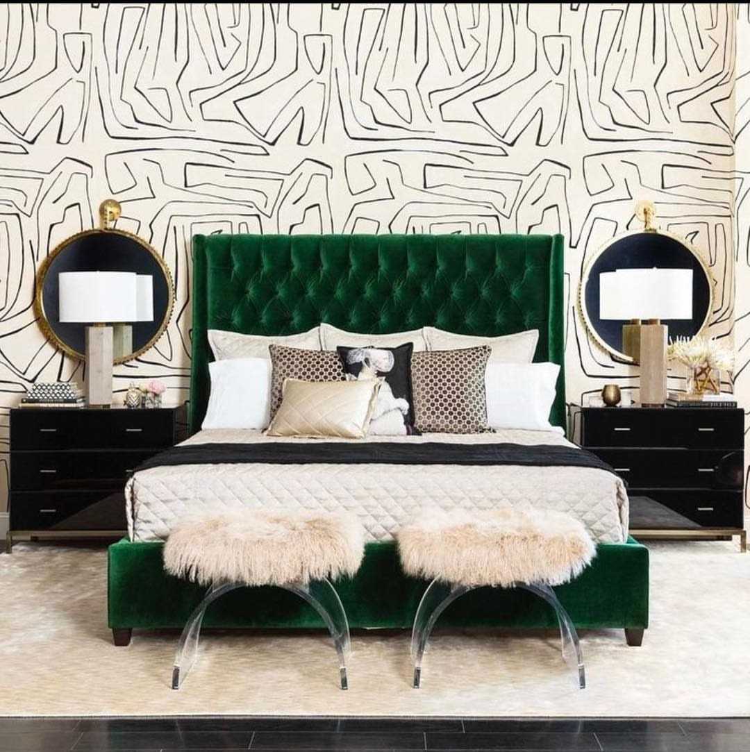 Зеленый. Этот тон больше характерен для английской классики. Темно-зеленый и изумрудный идеально сочетается с позолотой и деревом.
