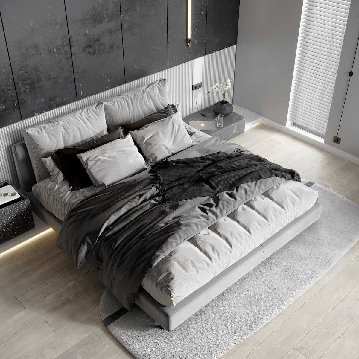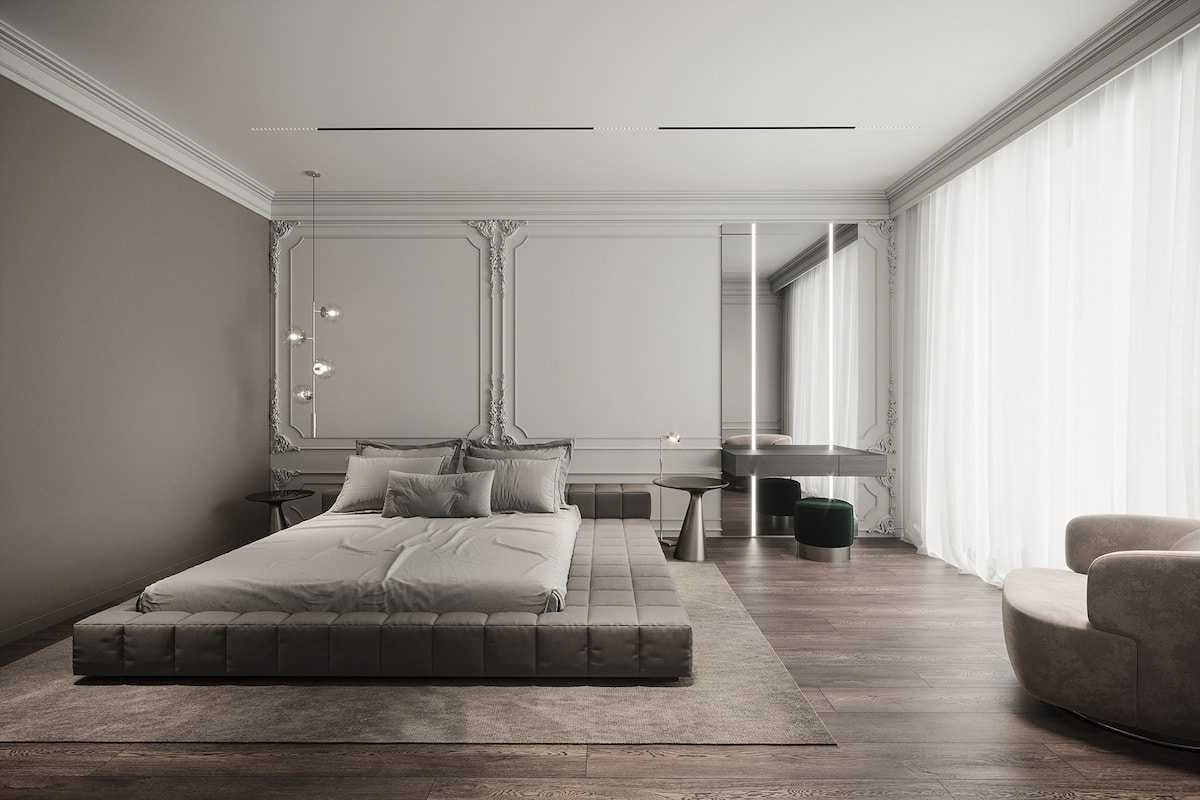 Серые оттенки в спальне