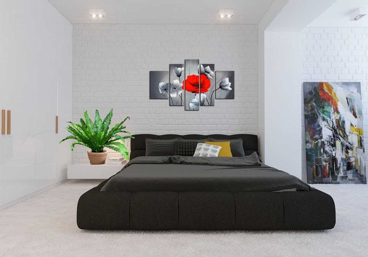 При большой загруженности в повседневной жизни, место отдыха должно максимально способствовать расслаблению и отдыху. В этом случае спальня в стиле минимализм является лучшим вариантом. Минимальное количество функциональной мебели, серо-черные цвета с ярким акцентом не загружают пространство и делают его комфортным.