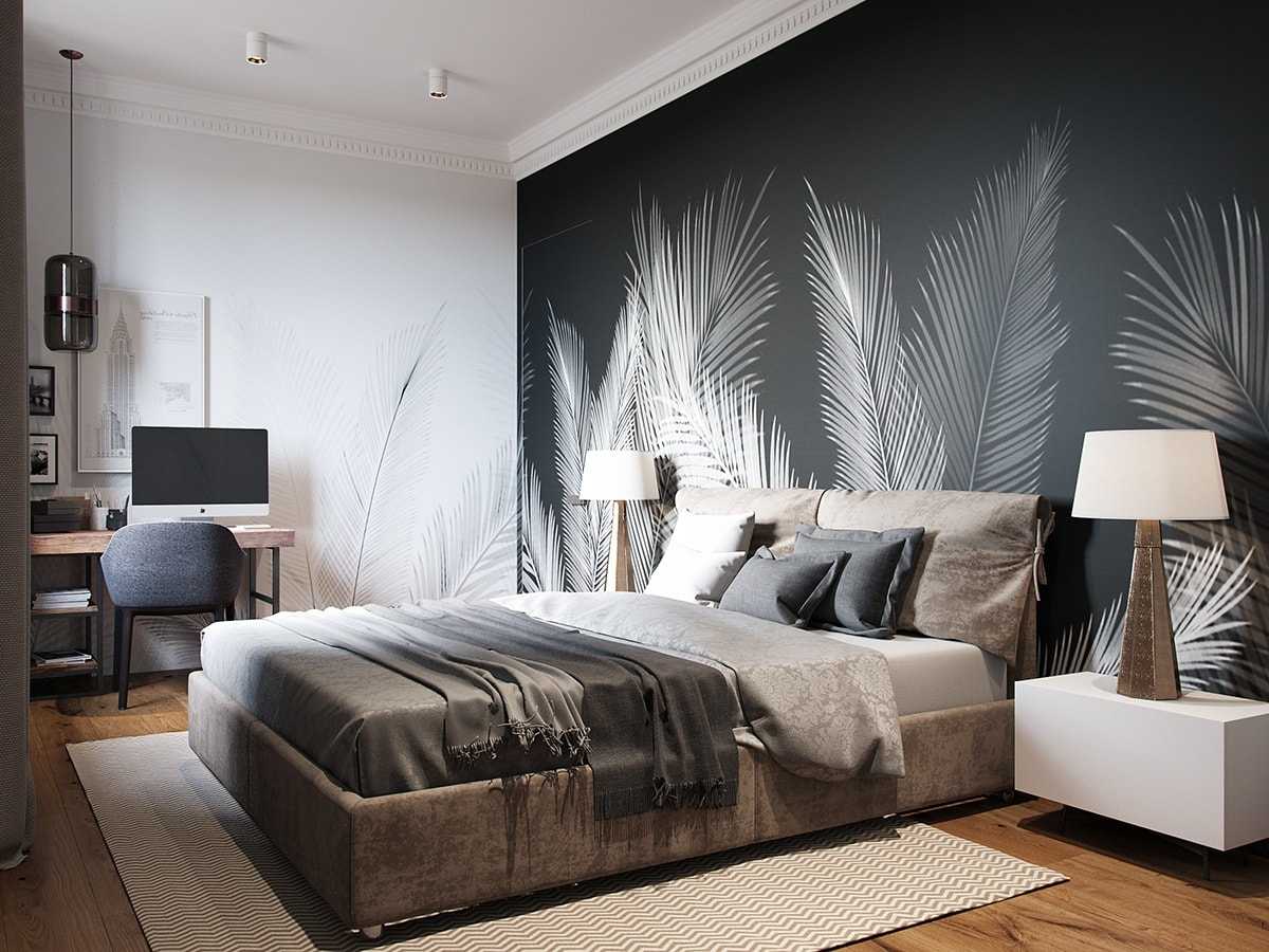 Как правило, акцентируют стену за изголовьем кровати, тем самым подчеркивают главное достоинство комнаты – кровать