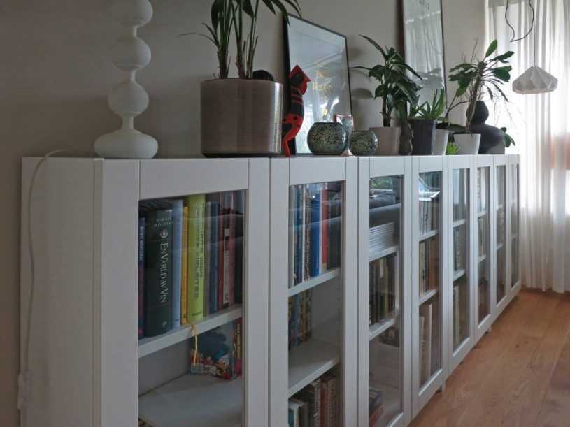 Если установить полку от Ikea в офисе или в домашнем кабинете рядом с письменным столом, можно создать идеальное пространство для бизнесмена. На стеллаже размещаются все необходимые для работы предметы: папки с документами, книги, журналы, открытки, ящики с канцелярскими принадлежностями.