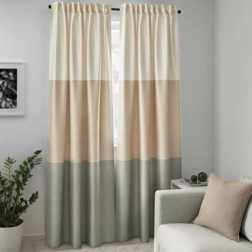 Вы можете купить шторы длиной 3 м, чтобы дома выбрать нужную длину, отрезав материал до необходимого уровня и зафиксировав линию отреза с помощью клеевой тесьмы, чтобы не пришлось подшивать.
