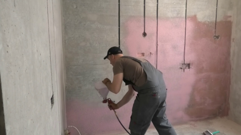 - Провести обработку стен с гидрофобной грунтовкой, чтобы обеспечить высокий уровень сцепляемости.
