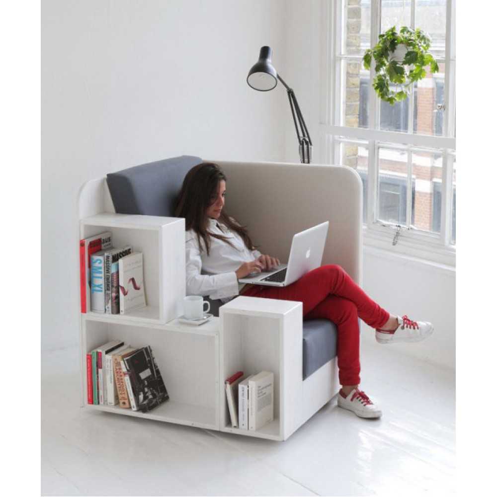 А теперь представим, что у вас в квартире вообще нет места. Ну нет и все. Стеллаж поставить некуда, под кроватью вы прячете свои секреты, а подоконник ваш настолько узкий, что на нем даже кот не помещается, не то что вы с чаем и томиком Бальзака… В подобных случаях рекомендуем оборудовать вашу комнату специальным креслом-библиотекой.