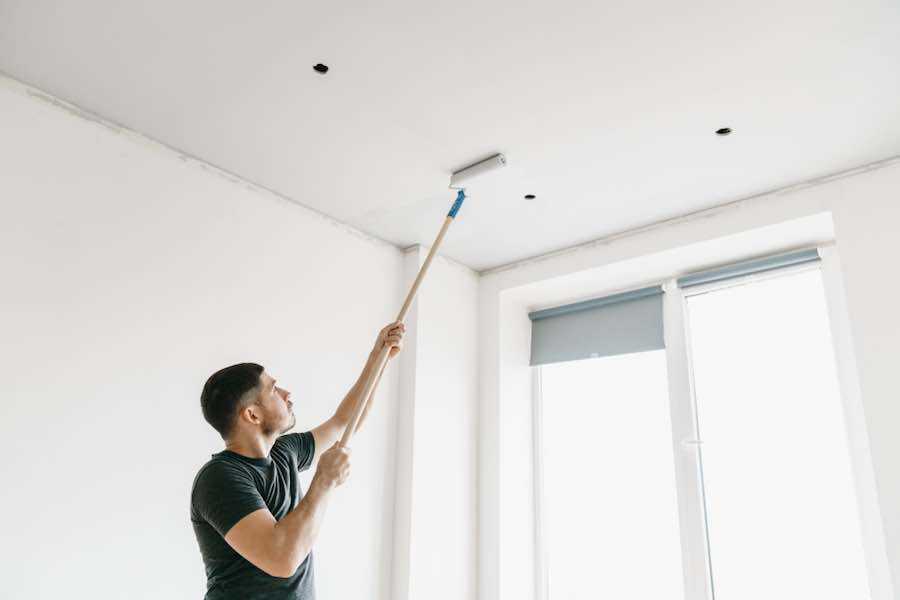 Очень медленная работа. Во время покраски потолка лучше не медлить и не прерывать работу. Если краска у вас получилась текучей, значит, слой будет высыхать достаточно быстро, и вы можете даже не успеть смазать границы мазков, из-за чего разводов, полос, а может даже и проплешин не миновать. Красьте потолок достаточно быстро и без остановок – только в таком случае краска ляжет ровно. Чтобы это получилось осуществить, не используйте валик с длинным ворсом – с ним ровно покрасить потолок не получится.