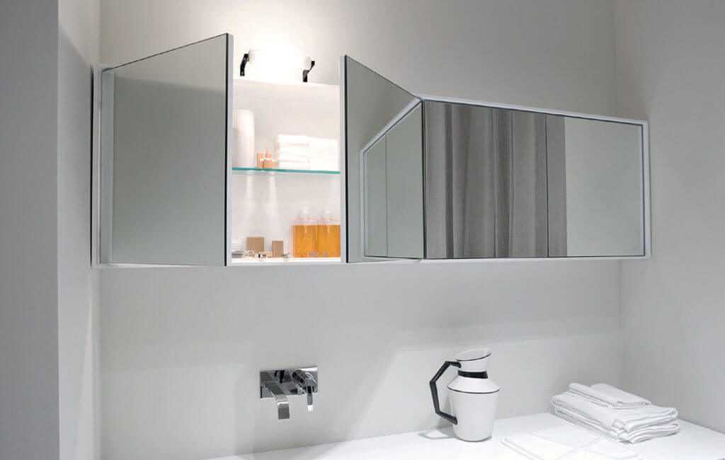 Выбирается элемент под обстановку вашей ванной, важно найти то, что органично впишется в интерьер и будет отвечать всем вашим потребностям. Чаще всего конструкция совмещена с зеркалом или же дверцы сделаны в виде зеркал, что очень удобно;