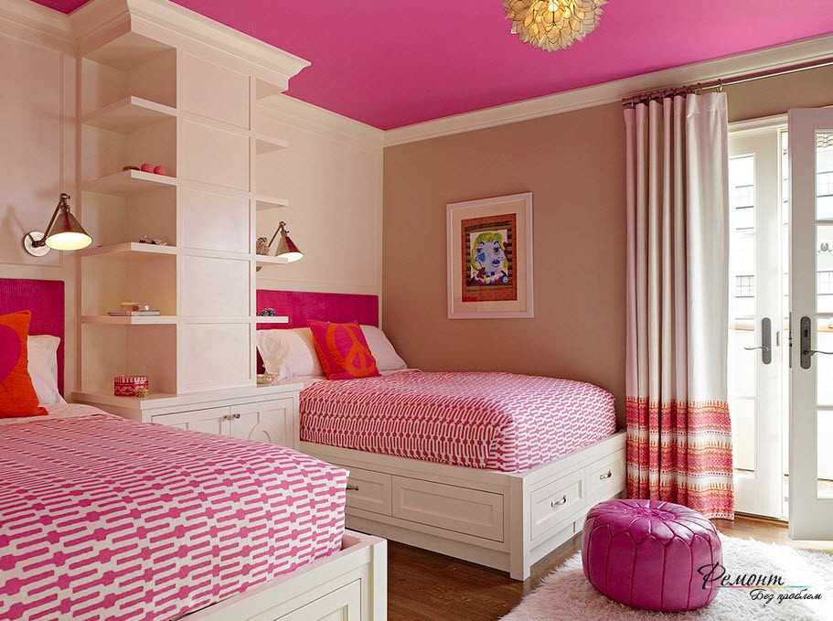 В первую очередь следует правильно разграничить пространство. Ведь у каждого в комнате должно быть не только место для личных вещей, но и лампа, свет от которой не будет мешать соседу. В случае с маленькими детьми все достаточно просто. Как правило, их режим дня достаточно схож и ложатся спать они в одинаковое время, но вот как оформить пространство тем родителям, чьи дети уже подростки и их разница в возрасте достигает 3-4 лет? В этом случае идеальным вариантом станет небольшая перегородка, которая четко разграничит комнату на две зоны. В таком помещение, удаленное в глубь спальное место, следует отдать меньшему ребенку, а старшего поселить ближе к выходу.