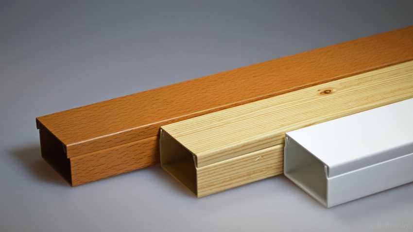 Декоративный короб для проводки на стену может быть изготовлен из пластика или металла. Существуют комбинированные варианты изделия. Короб также производится из деревянных реек или строганых досок. Конструкцию можно оставить в первозданном виде или покрасить. Такой вариант впишется в классический или деревенский интерьер (в сочетании с деревянной мебелью и другими элементами декора).