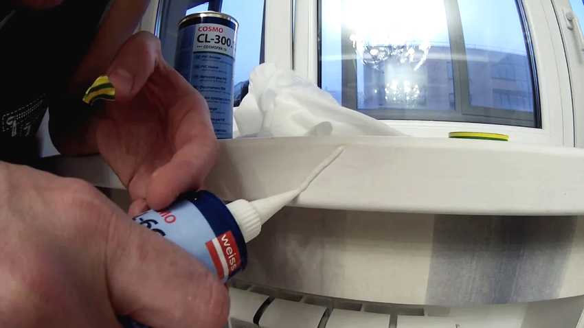 - Обрабатывают поверхность подоконника ацетоном или спиртом.