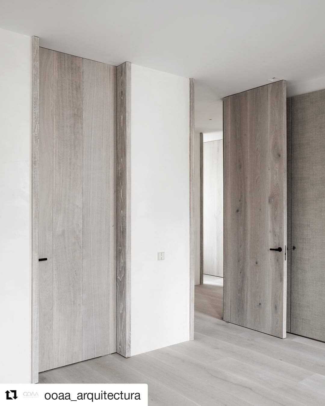 Распространенная ошибка – пытаться подобрать пол и двери не только одного цвета, но и с одинаковым рисунком. Во-первых, сделать это крайне проблематично – рисунок всё равно будет разной крупности и интенсивности. Во-вторых, в интерьере это выглядит так, как будто вы боитесь экспериментов и пошли самым простым и скучным путем. Если уже и подбираете пол и двери со схожим рисунком, пусть он будет разного масштаба и расположен в разном направлении, как на фото внизу.