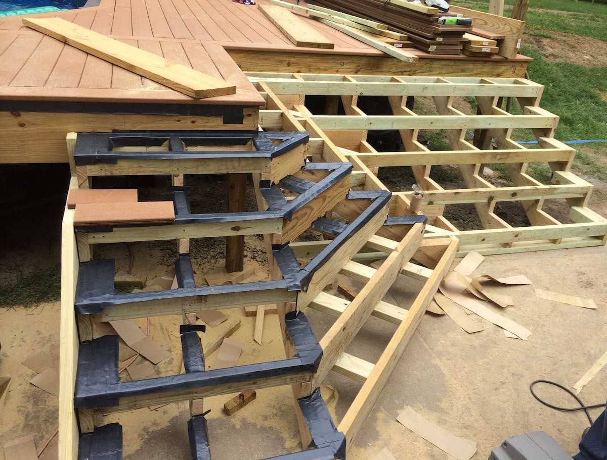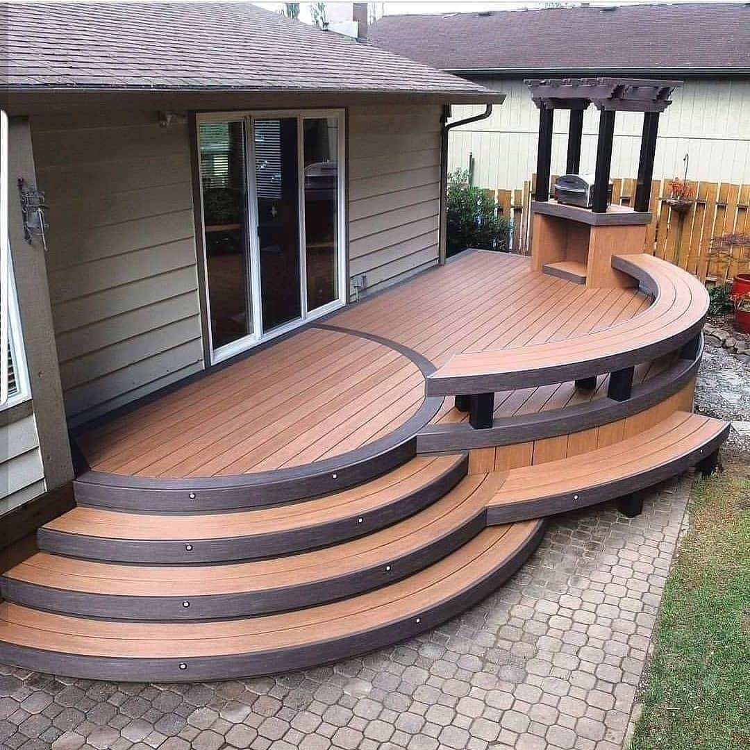 В последнее время на рынке строительных и отделочных материалов появились в продаже готовые блоки из декинга размером 500х500 мм. Они позволяют создать достаточно интересное крыльцо из террасной доски и существенно минимизируют труд монтажника.