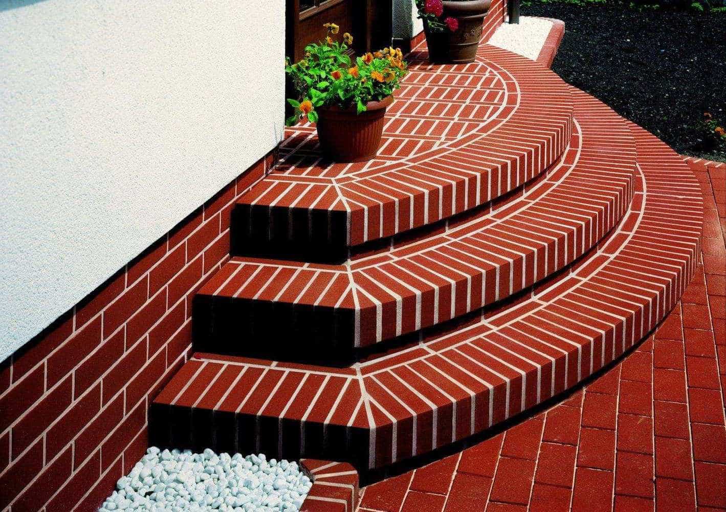 Крылечная площадка из красного кирпича смотрятся стильно и необычно