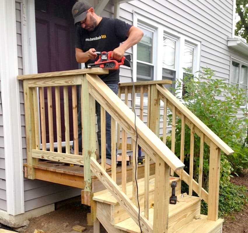 Наиболее распространенным материалом для крыльца является дерево. Ступени крыльца, на которые приходится наибольшая нагрузка, делаются из бруса, лафета, досок не менее 40 мм толщиной.