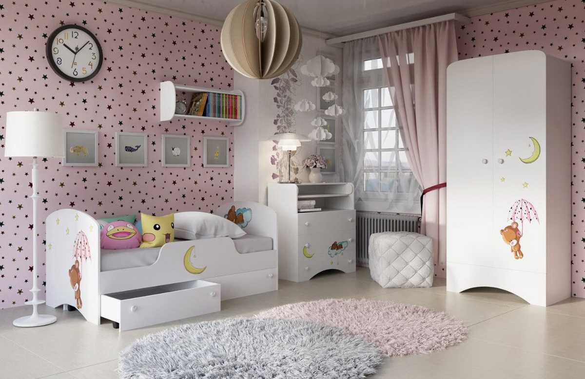 Дизайн детской комнаты для новорождённой девочки: фото примеры в интерьере
