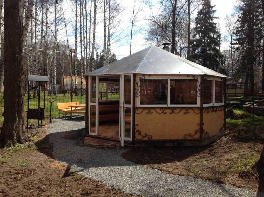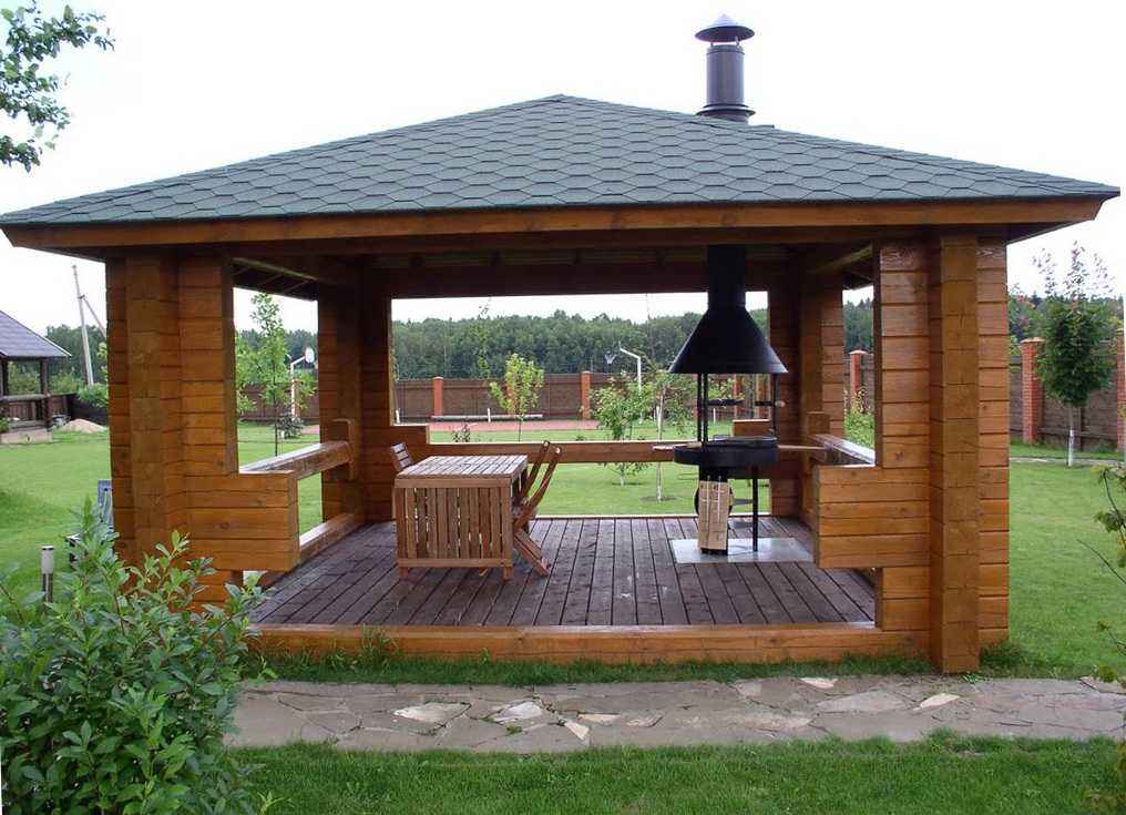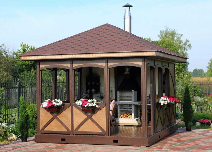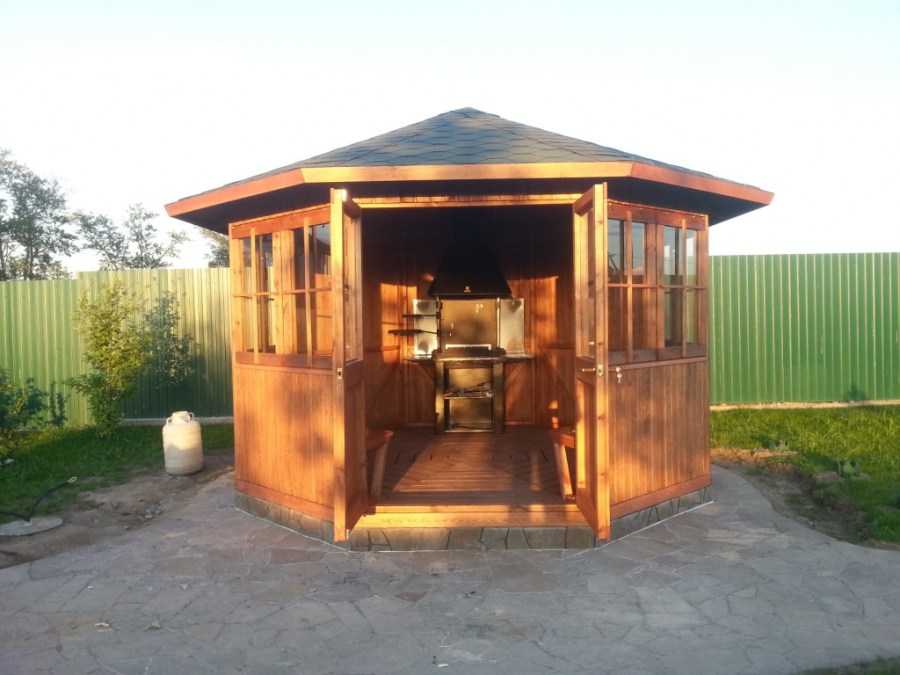 Что же собой представляет закрытая беседка? Простой вопрос, но ответ на него не так очевиден. Это не просто стены и крыша, беседка такого типа может быть оборудована целым комплексом удобств: от электросети, до системы отопления, водопровода и вообще, представлять собой миниатюрный домик для отдыха. Еще один распространённый вариант — беседка с мангалом.