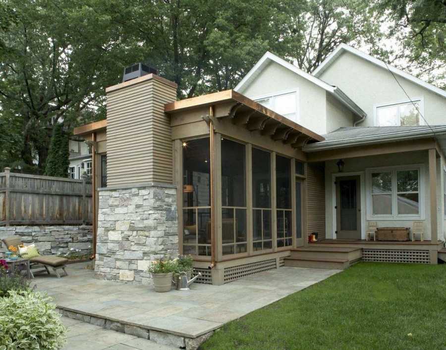 В тандеме могут использоваться деревянные, стеклянные металлические детали. Это долговечное добротное строение, основанное на фундаменте.
