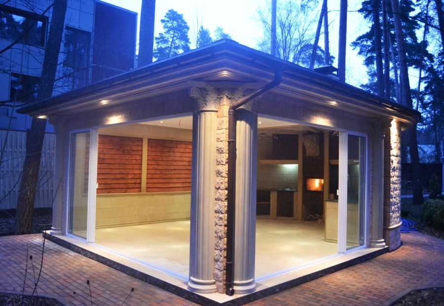 - Благодаря надежным стенам и остеклению, в зимней беседке с мангалом или барбекю отдых комфортен в любую погоду.