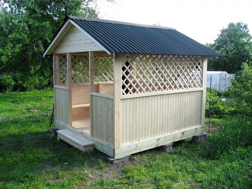 Открытая беседка значительно проще по своей конструкции и соответственно ее легче построить, она обойдется существенно дешевле. Однако, как сами понимаете: если вы хотите отдыхать круглогодично, в вашем районе часто идет дождь и вообще — в беседке вы планируете проводить ночи, вам она вряд ли подойдет.