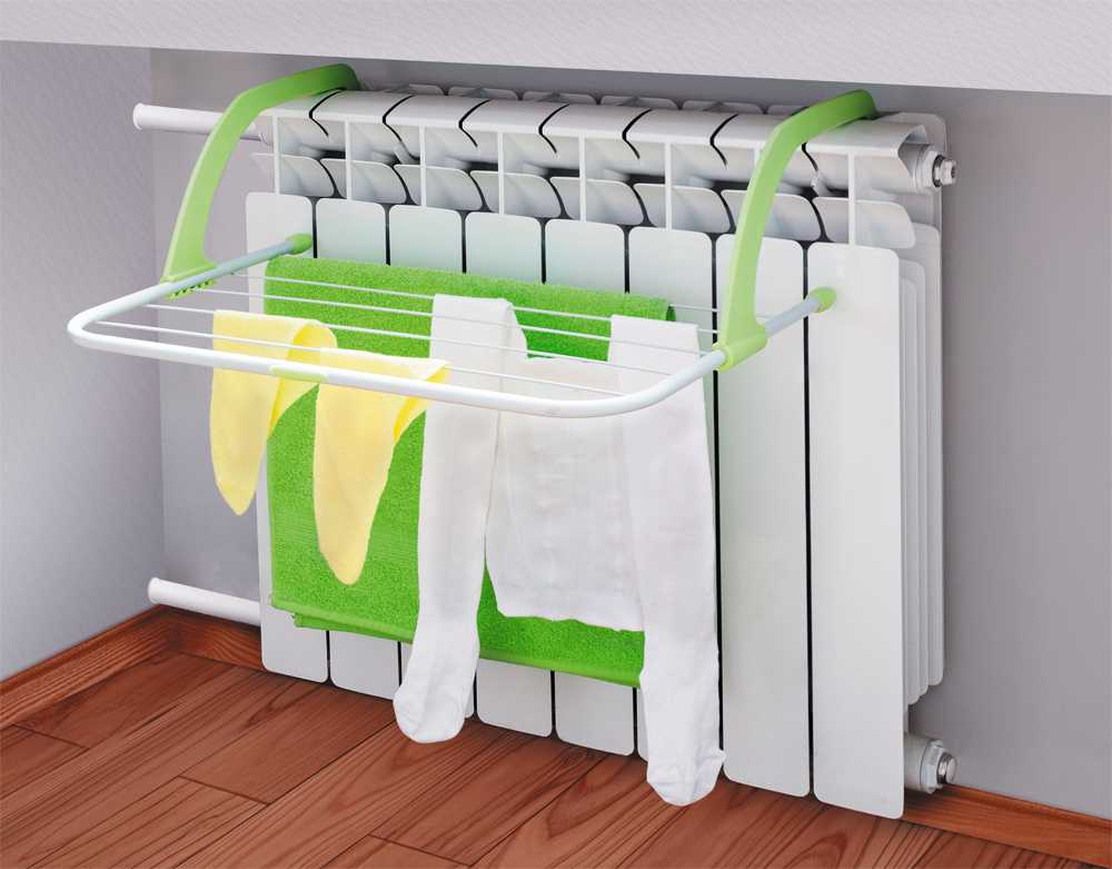 Такой вариант идеален зимой, ранней весной или поздней осенью, когда длится отопительный сезон в квартирах. Речь идет о быстрой сушке вещей. Даже если у вас есть балкон, такая модель сушилки будет не менее актуальной, ведь когда на улице идет дождь или снег, одежда долго не сможет сохнуть. А вокруг радиатора достаточно повесить на ночь одежду, чтобы она полностью высохла.