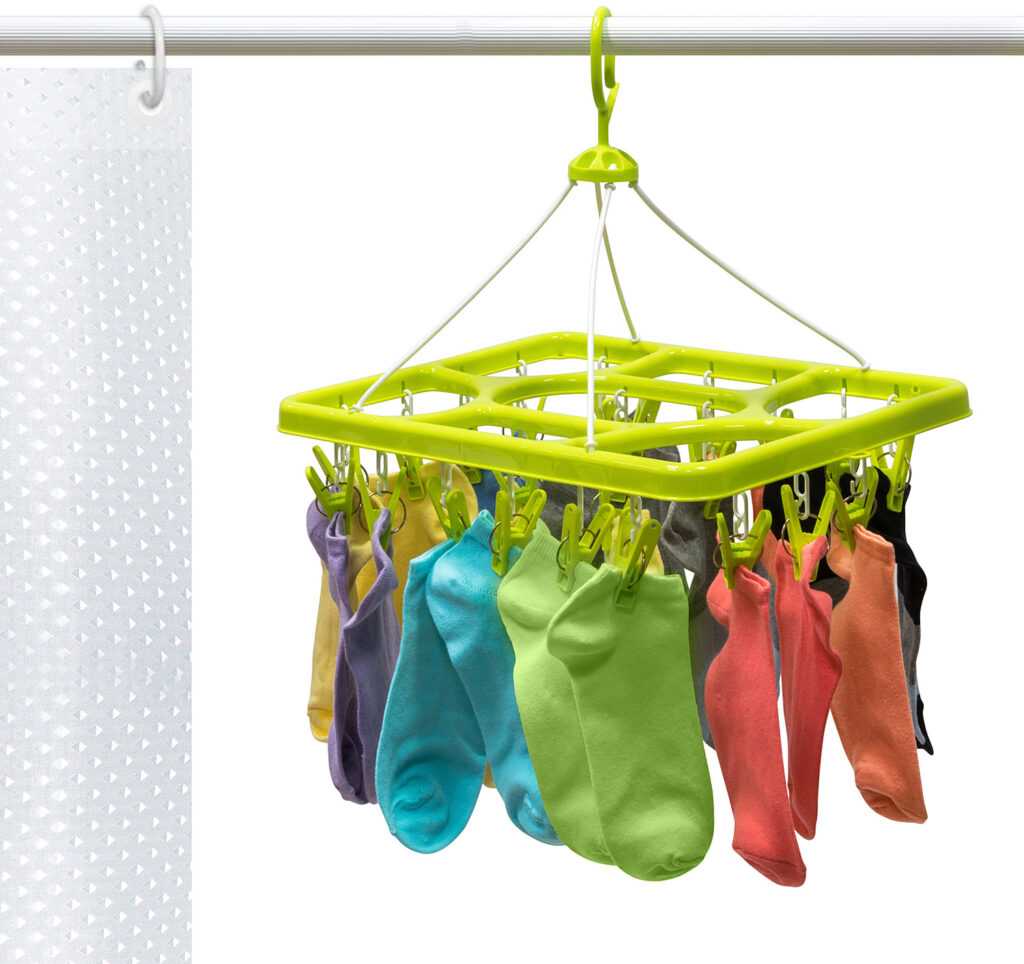 Также на нем висит осьминог с крючками для носков и прочей мелочевки. Также сэкономьте много места, т. К. В одну стопку носков поместятся два.