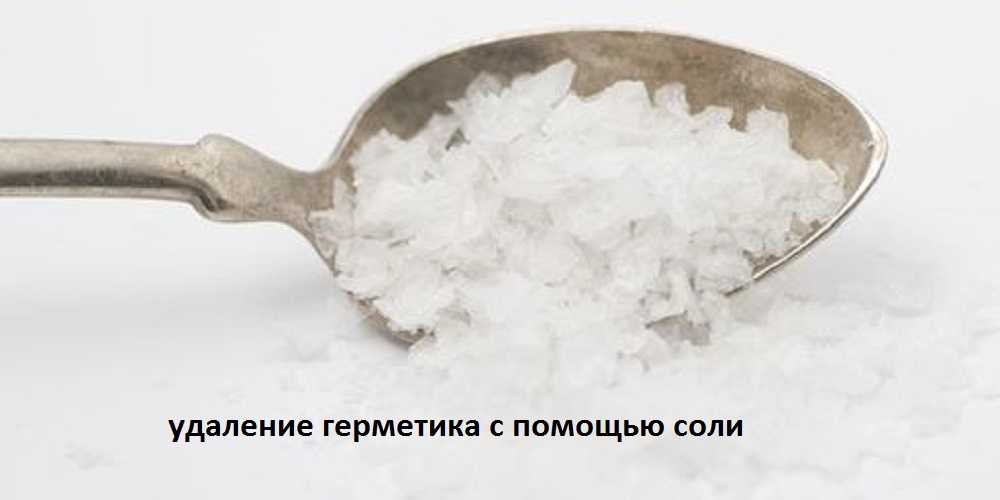 Существует ещё один метод, который позволяет выполнить удаление силиконового герметика, это использование простой соли. Такой продукт есть в каждом доме. Для этого соль необходимо несильно смочить водой, потом положить её на чистую ткань, лучше брать марлю, полученным тампоном трём по тому месту, где образовалось загрязнение от клеевого состава.