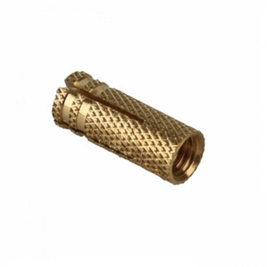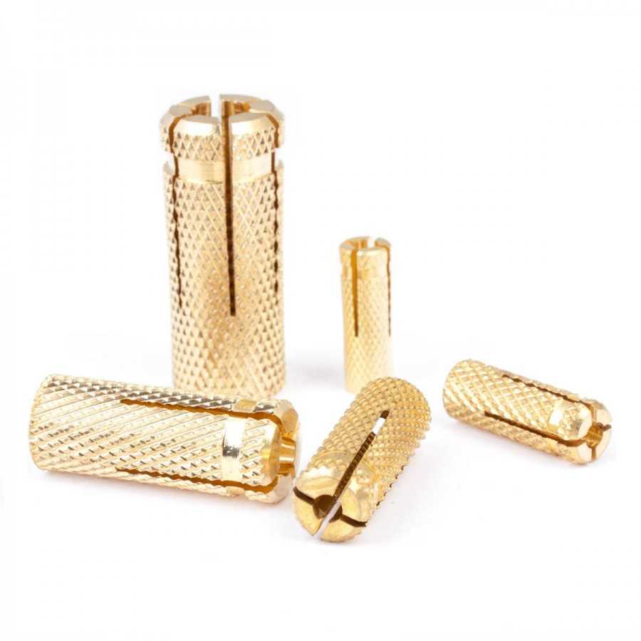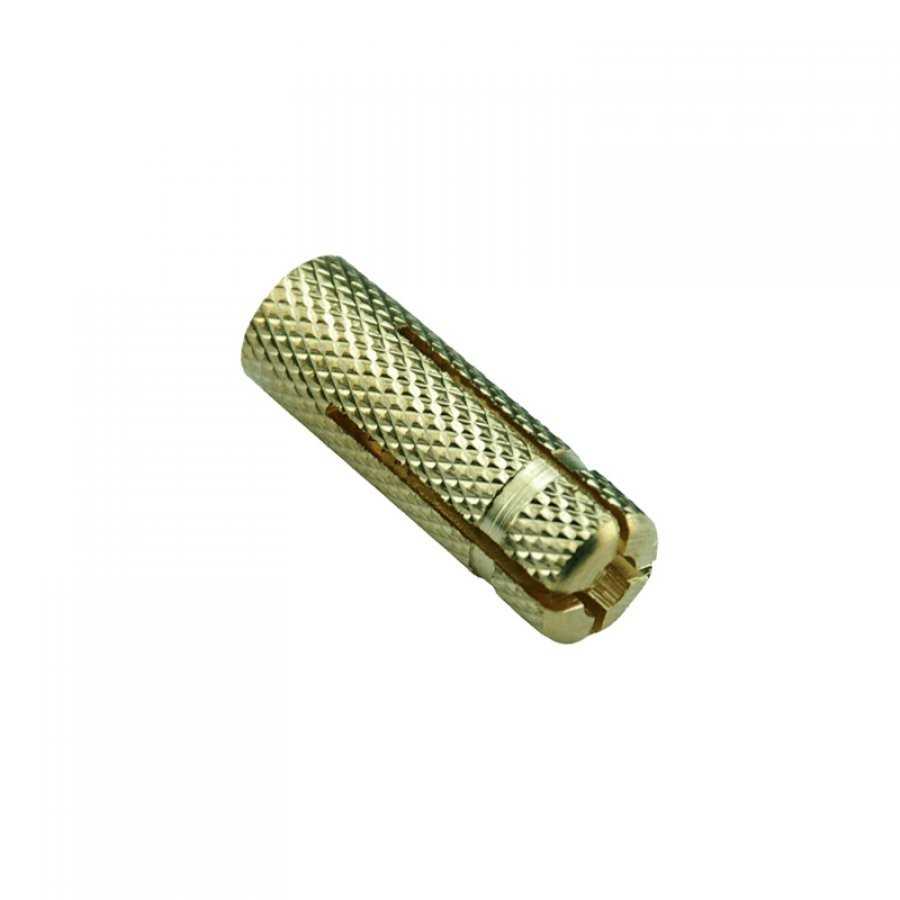 Так называемый MSA. Этот крепеж сделан из латуни. Как и все крепежные анкерные системы, он имеет насечку на наружной поверхности гильзы для лучшего сцепления с внутренней поверхностью отверстия в стеновом материале. Максимальное внутренне сечение гильзы составляет 8 мм. Предназначен он для закрепления на кирпичной стене не очень тяжелых изделий и материалов.