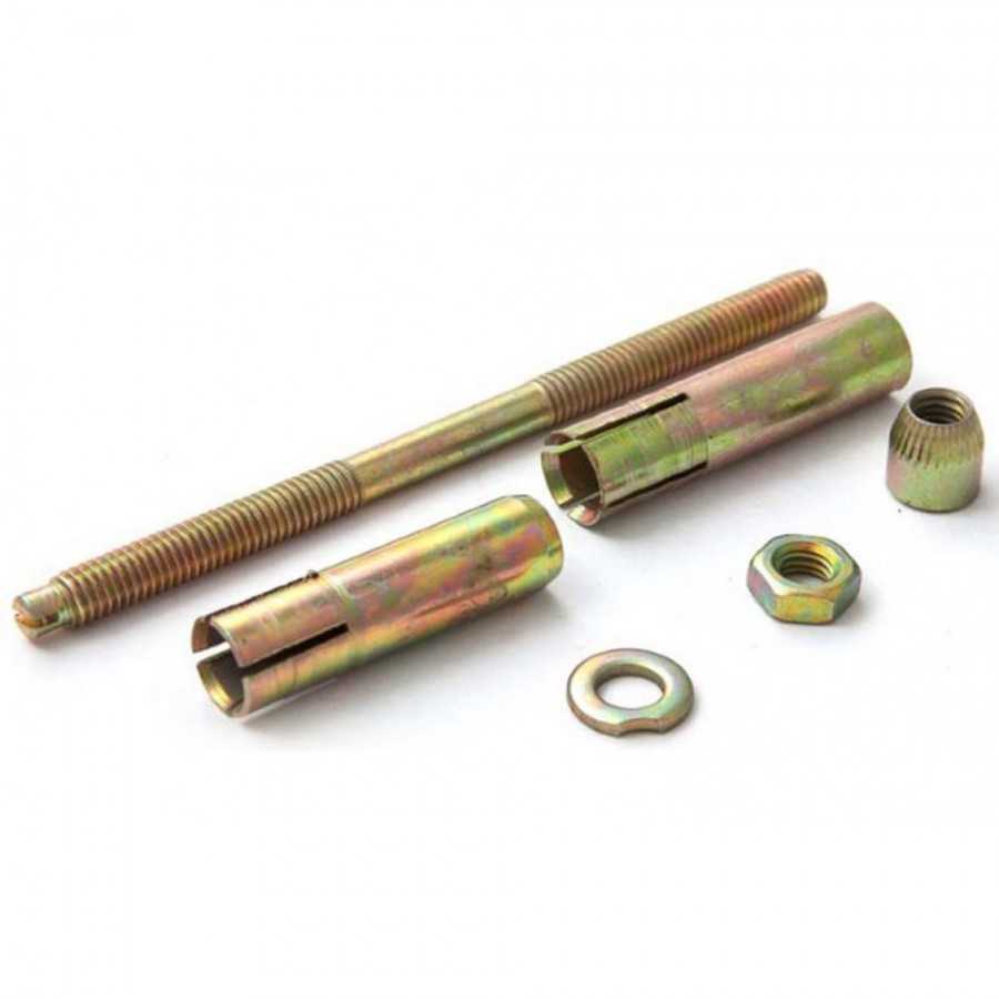 На практике также часто приходится сталкиваться с необходимостью использования анкерных болтов цангового типа. Основным отличием данных анкеров, которые обычно применяются для крепления к строительным конструкциям крупногабаритных предметов, является наличие в их конструкции специальной цанги, выступающей в роли распорной втулки. Резьбовое отверстие в цанге, на боковой поверхности которой имеются продольные разрезы, имеет конусообразную форму. При вкручивании в такое отверстие шпильки или винта цанга разжимается, надежно фиксируясь внутри посадочного отверстия.