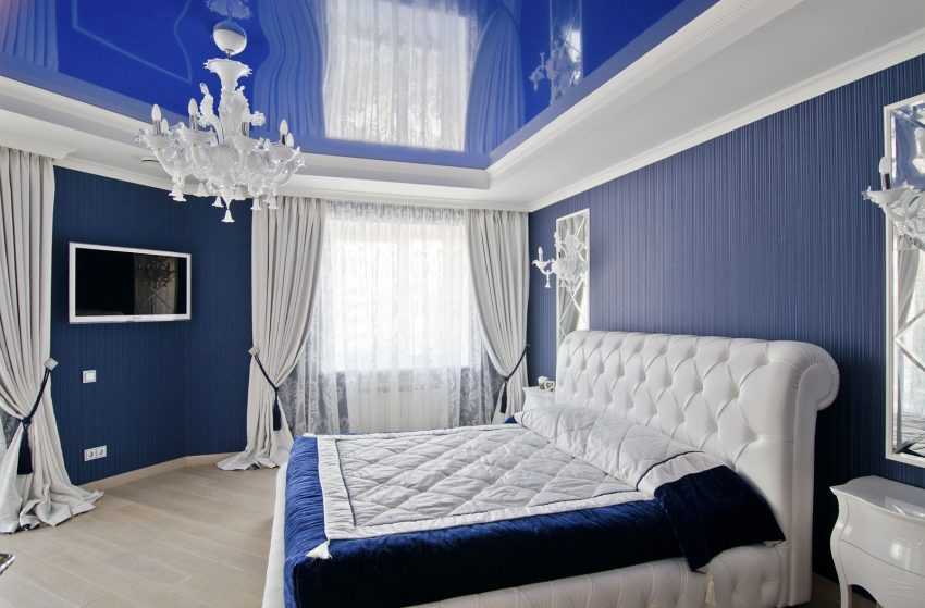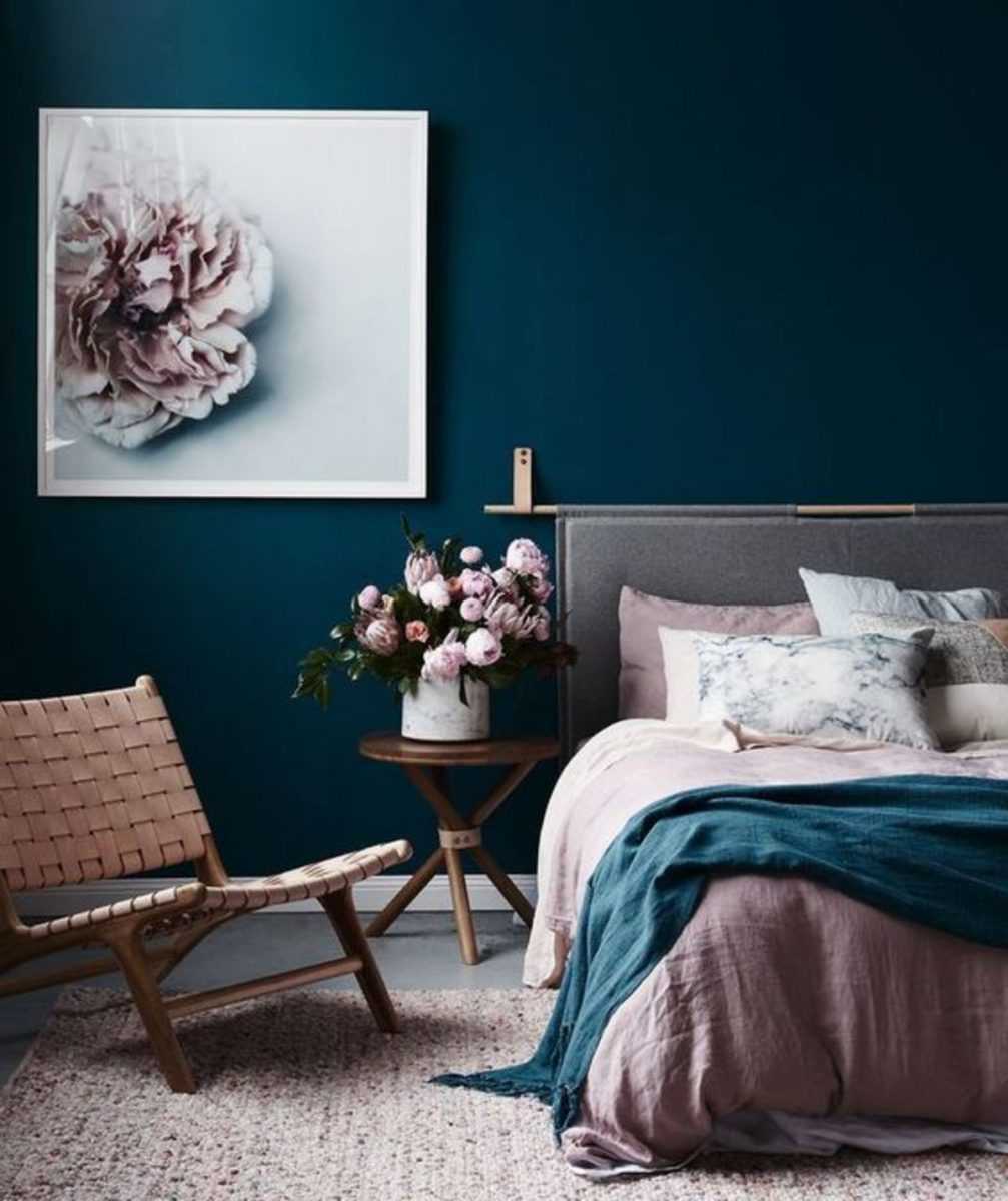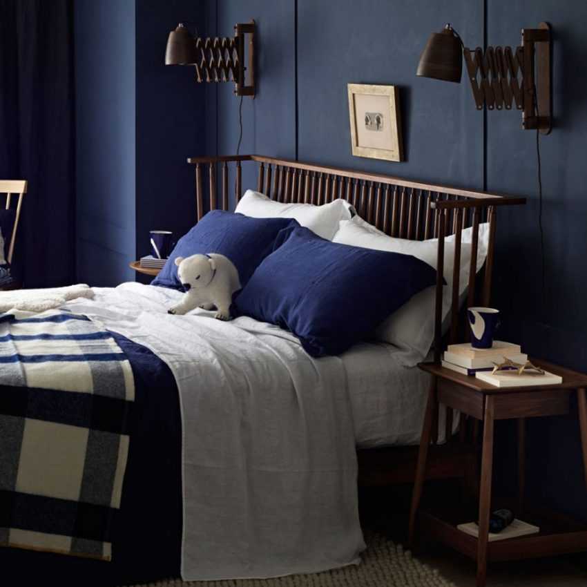 Синий цвет и его оттенки традиционно считаются наиболее подходящими для спальной комнаты. Он служит хорошим фоном для дополнительных ярких цветовых элементов