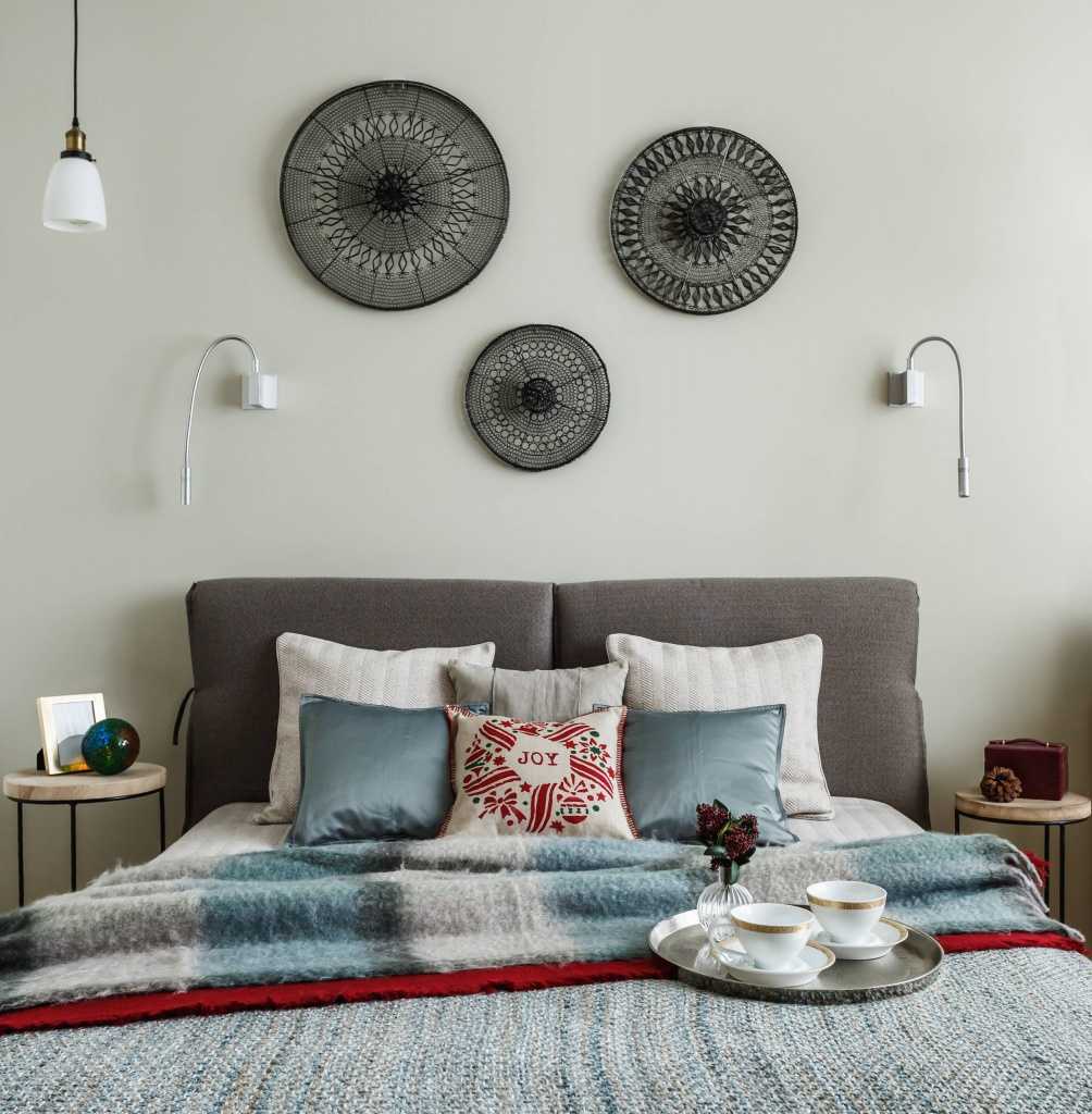На стену за изголовьем можно повесить интересные панно, картины или постеры.