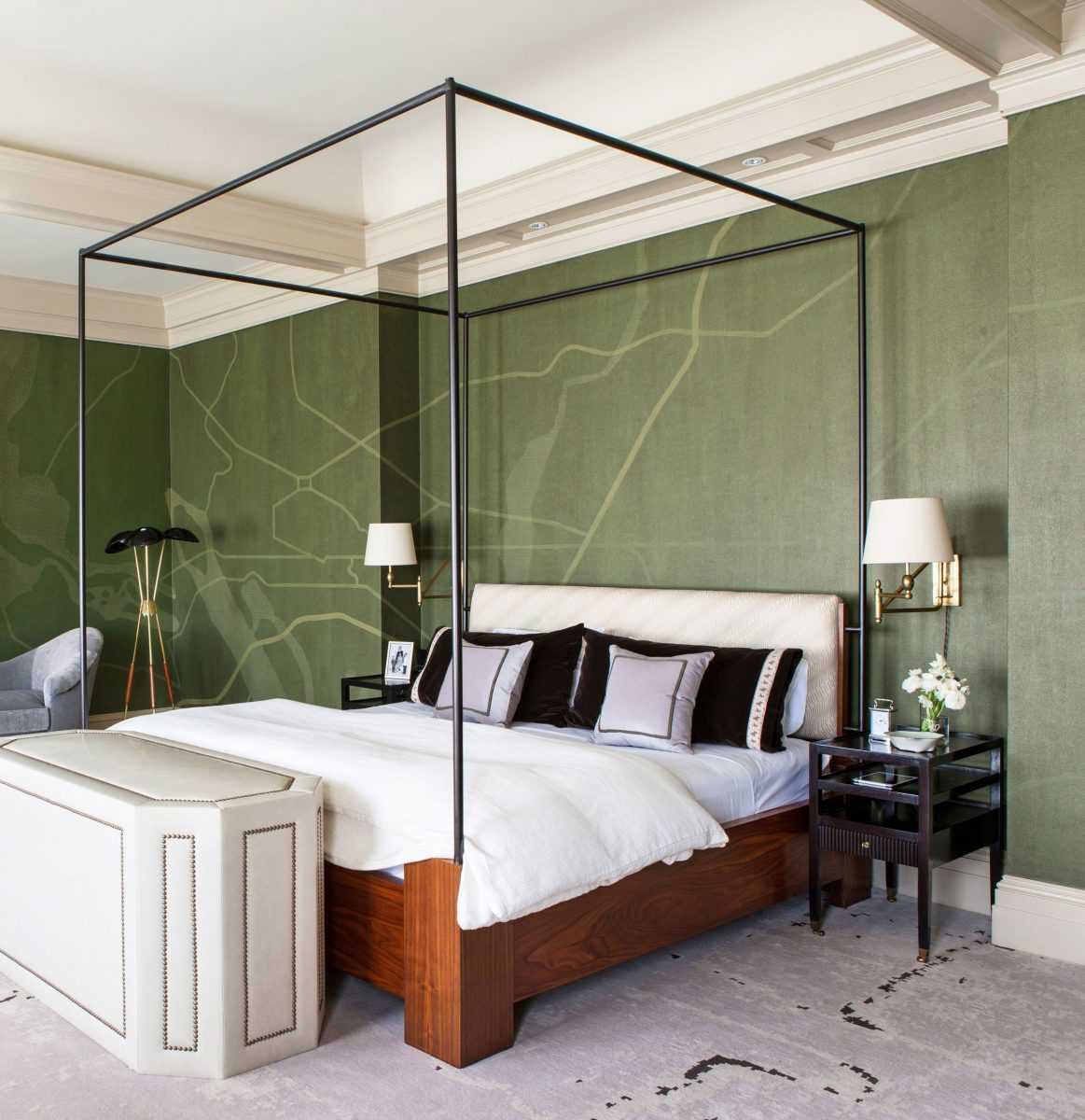 Если хочется добавить чего-то свежего в дизайн спальни в пастельных тонах, выбирайте мятный цвет. Он смешан из оттенков зеленого и синего цветов и может быть ярким акцентом в вашей спальне. Розово-бежевый цвет пудры отлично вписывается в романтический или стиль «прованс».