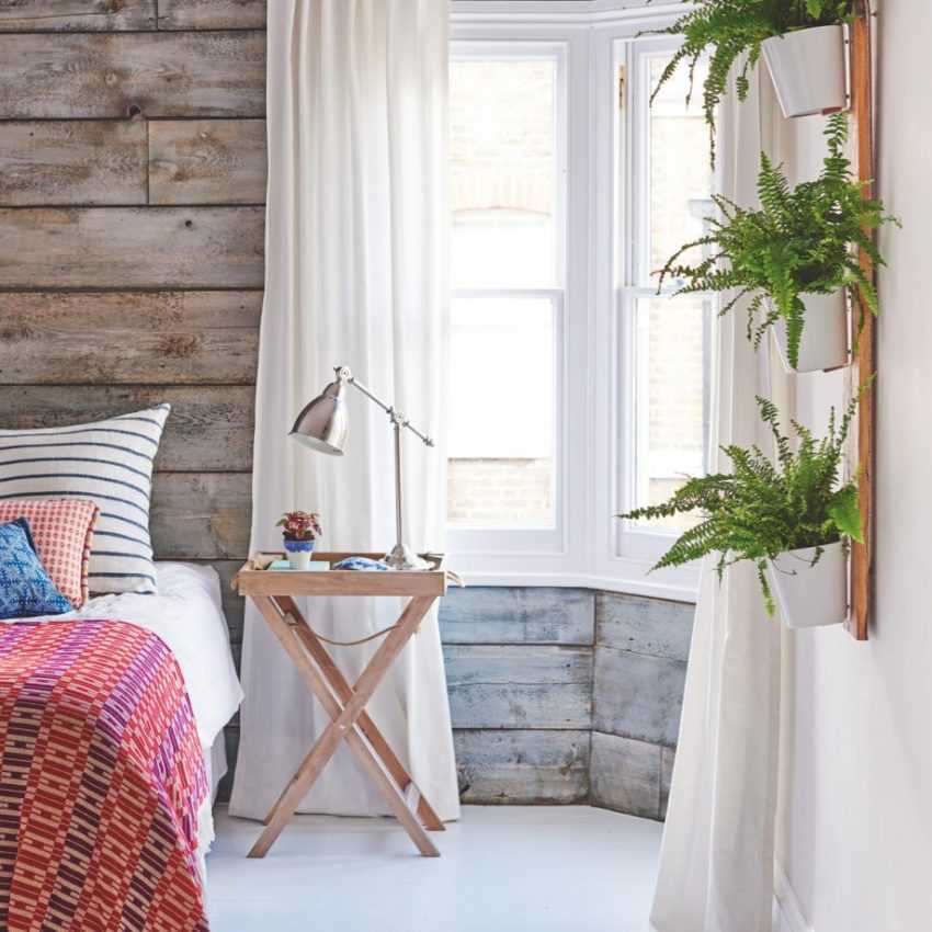 Спальню можно оформить в стремительно набирающем популярность эко-стиле. Для декора используются натуральные материалы: круглые древесные срезы и цельные сухие деревья, вскрытые лаком, живые цветы в горшках, травяные газоны в длинных ящиках.