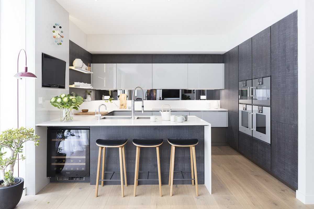Модные угловые кухни 2021 – 2022 года позволяют сделать дизайн более эргономичным и поместить много принадлежностей. Один из самых ярких примеров — П-образный гарнитур с полуостровом или барной стойкой.